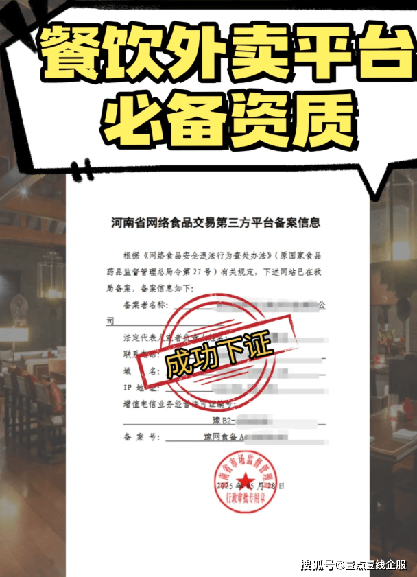 “收集食物买卖第三方平台供给者该当对入网食物运营者进行实名登记,明白其食物平安办理义务;依法该当取得许可证的,还该当审查其许可证。收集食物买卖第三方平台供给者该当向所正在地县级人平易近食物平安监视办理部分存案。”未按进行存案的,市场监视办理部分将根据相关法令律例责令更正,赐与;拒不更正的,将处以罚款。请留意: 这是省级监管部分担任的存案事项,而非市级或区级。正在打点前,先拜候您所正在省份的“政务办事网”或“市场监视办理局官网”确认具体受理机构。找到“收集食物买卖第三方平台供给者存案”事项,正在线填写申请消息,并上传所有所需材料的电子扫描件。消息公示:必需正在平台网坐首页或运营勾当从页面显著公示您的存案编号和《食物平安办理轨制》。消息更新:当存案消息(如公司地址、代表人、应正在变动发生后30个工做日内向原存案机关打点变动存案。轨制落实:存案不是“一备了之”,环节正在于严酷施行已成立的各项食物平安办理轨制,切实承担起平台应尽的食物平安办理义务。前往搜狐,查看更多。